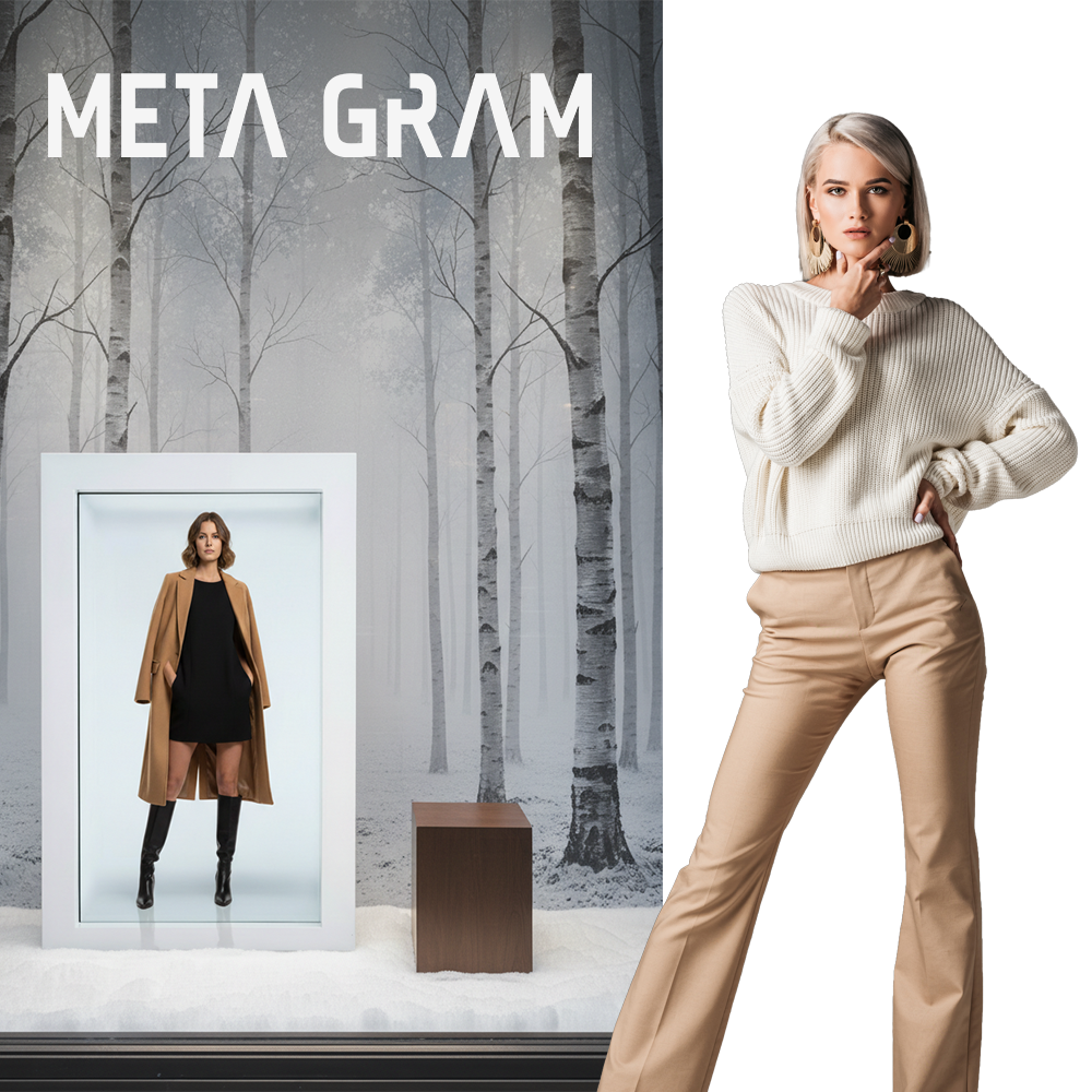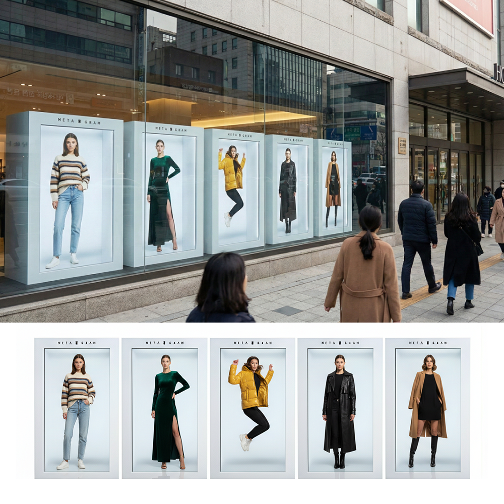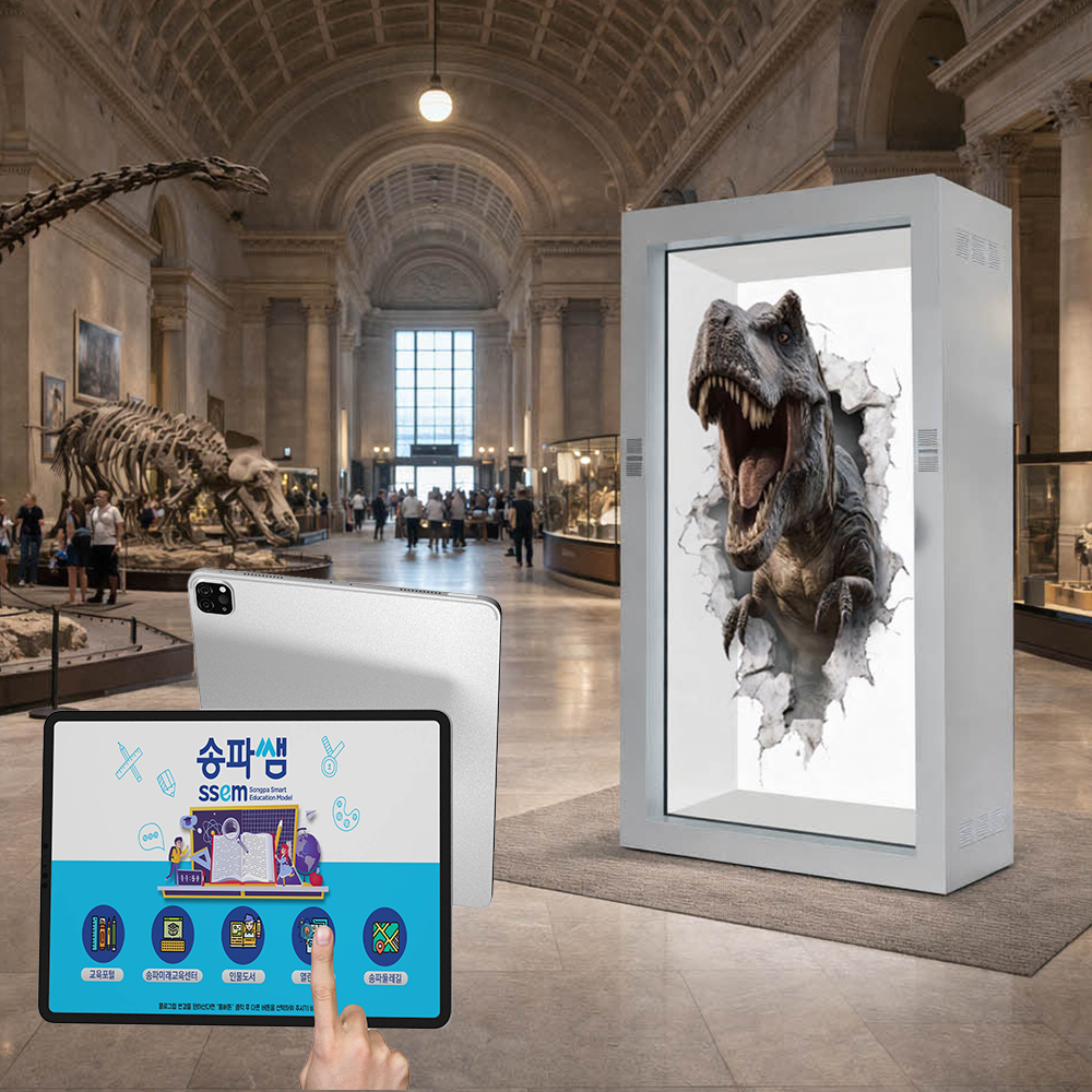 메타그램 시리지는 23/55/86 인치 TLCD 패널을 활용한 투명 홀로그램 케이스 입니다.